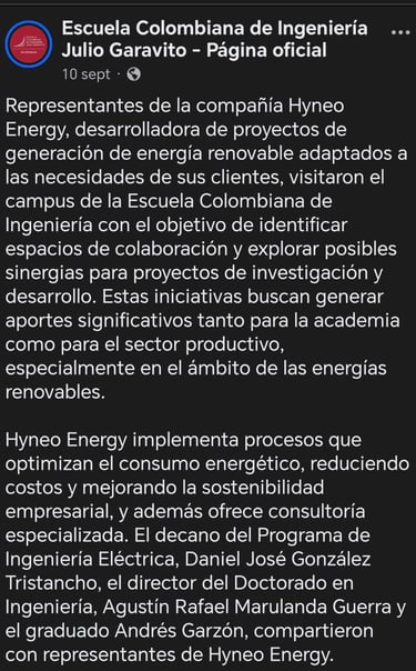Mantente al tanto de las últimas noticias y desarrollos en el campo de las energías renovables y sostenibles. En nuestra sección de noticias, te ofrecemos información actualizada sobre proyectos, innovaciones tecnológicas, políticas energéticas y colaboraciones académicas con universidades, que están impulsando la investigación y la educación en el sector energético.